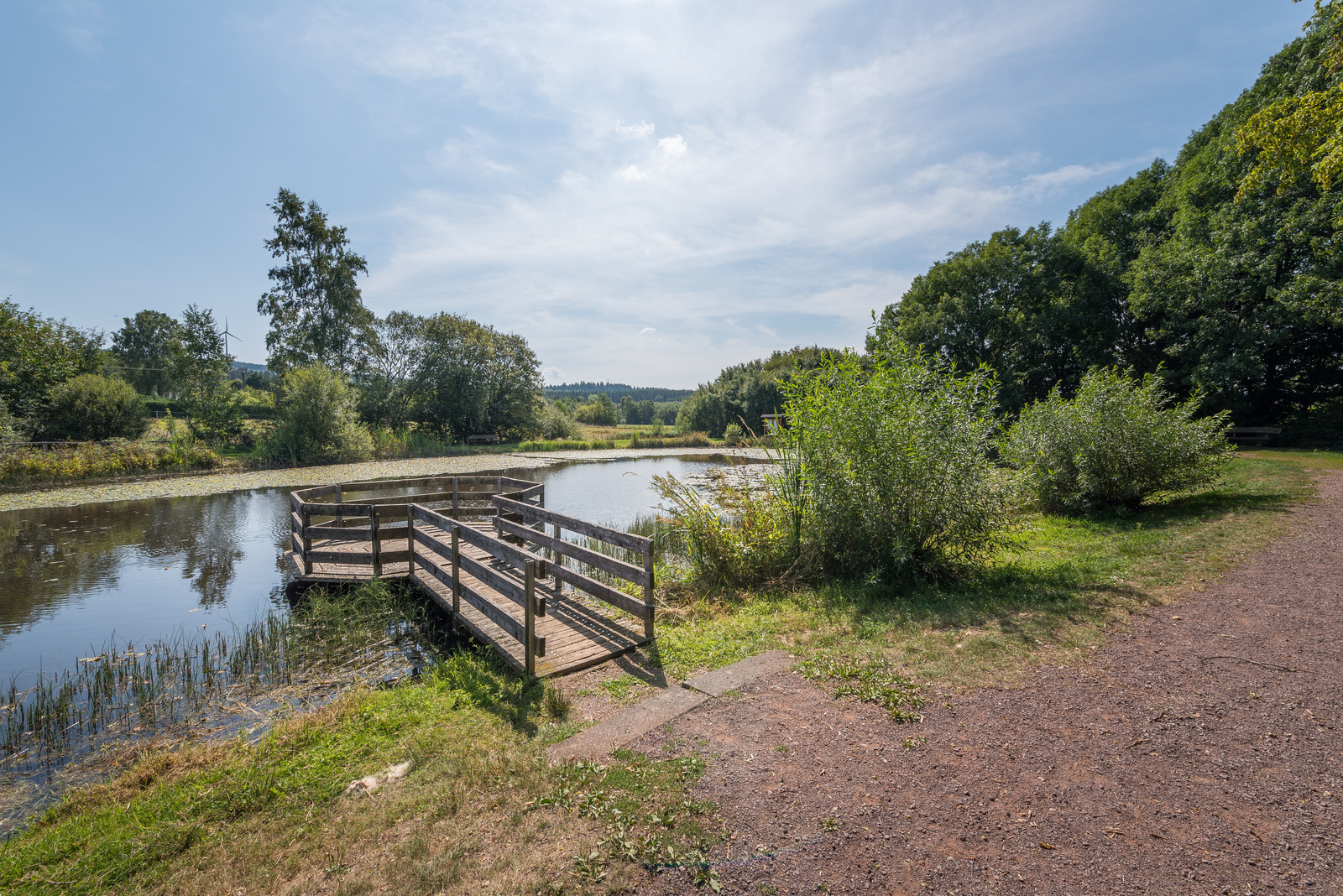 Sonniger Blick auf den See der Ortsgemeinde Schillingen