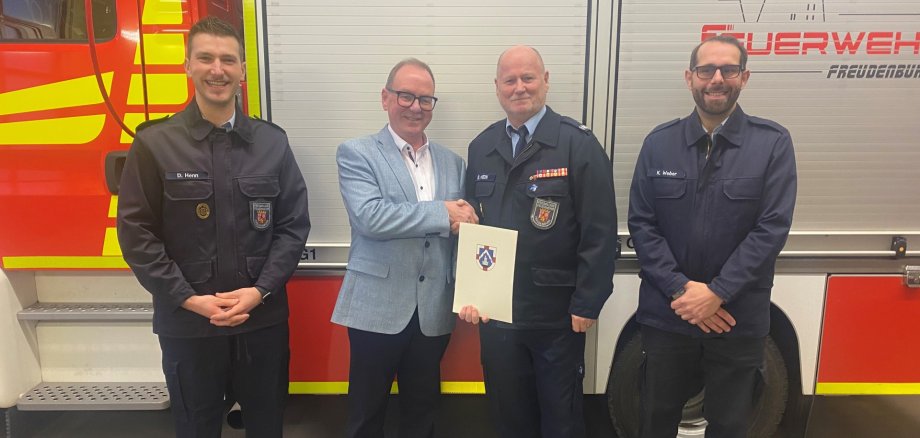 Bürgermeister Jürgen Dixius überreichte vergangene Woche die Ernennungsurkunde und würdigte damit das langjährige und verdienstvolle Engagement, die vielen geleisteten Stunden sowie die stete Hilfs- und Einsatzbereitschaft Heins für die Feuerwehren der Verbandsgemeinde.