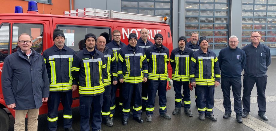 Bürgermeister Jürgen Dixius und Wehrleiter Stefan Feltes nahmen die Übergabe vor und dankten Wehrführer Klaus Neusius sowie den anwesenden Kameradinnen und Kameraden für ihren kontinuierlichen ehrenamtlichen Einsatz zum Schutz der Bevölkerung. Bürgermeister Dixius betonte: „Unsere Freiwilligen Feuerwehren leisten einen unverzichtbaren Beitrag für unsere Gemeinden. Mein Dank gilt allen Einsatzkräften für ihr Engagement und ihre Einsatzbereitschaft – ich wünsche ihnen, dass sie stets gesund von ihren Einsätzen nach Hause kommen.“
