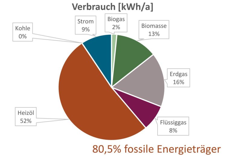 Die Grafik zeigt die aktuelle Heizungsstruktur mit der prozentualen Verteilung an Energieträgern in der Verbandsgemeinde