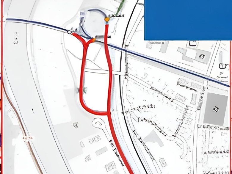 Die gegenüberliegende Auffahrtsrampe (Bahnhof in Richtung Tunnel) bzw. Abfahrtsrampe (Irsch/Ayl in Richtung Bahnhof) ist nicht von der Baumaßnahme betroffen.
