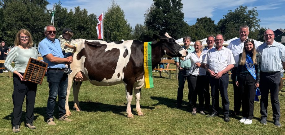 Höhepunkt war dabei wie immer die Wahl der Miss Hochwald, der schönsten Kuh der Tierschau. Die diesjährige Siegerin trägt den Namen „Somalia“ und stammt vom Hof von Axel und Nadine Hemmes aus Damflos (Verbandsgemeinde Hermeskeil), die bereits im vergangenen Jahr die Auszeichnung entgegennehmen konnten.